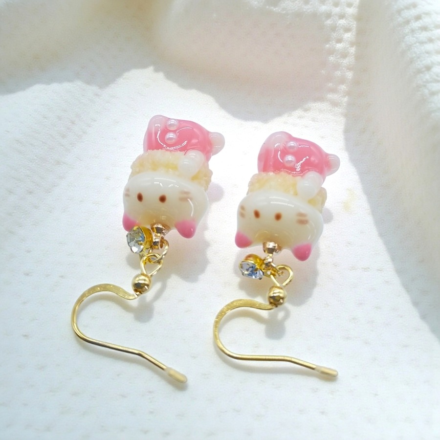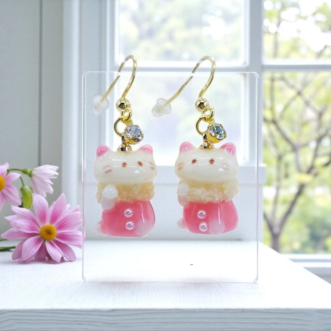春が待ち遠しい!可愛い招き猫ちゃんのピアス(イヤリング)