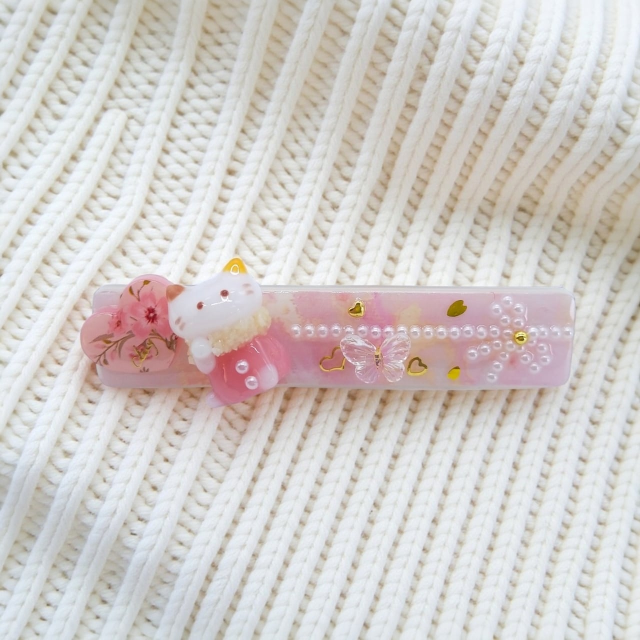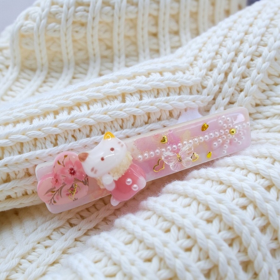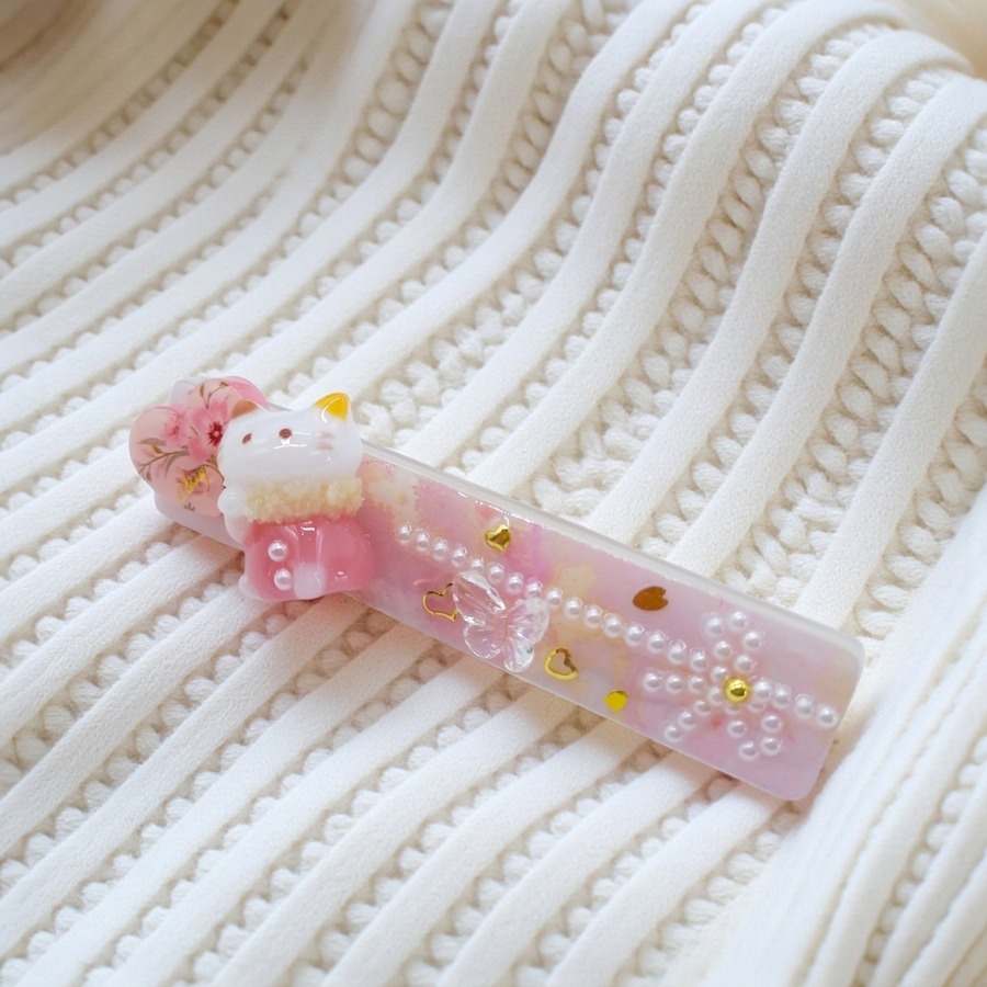 春よ来い!招き猫ちゃんのヘアクリップ