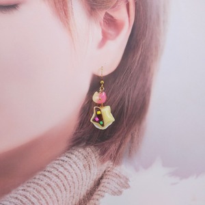 星形クリームサンドと猫ちゃんフェイスのピアス/イヤリング