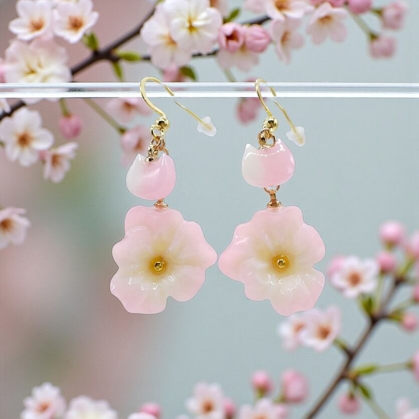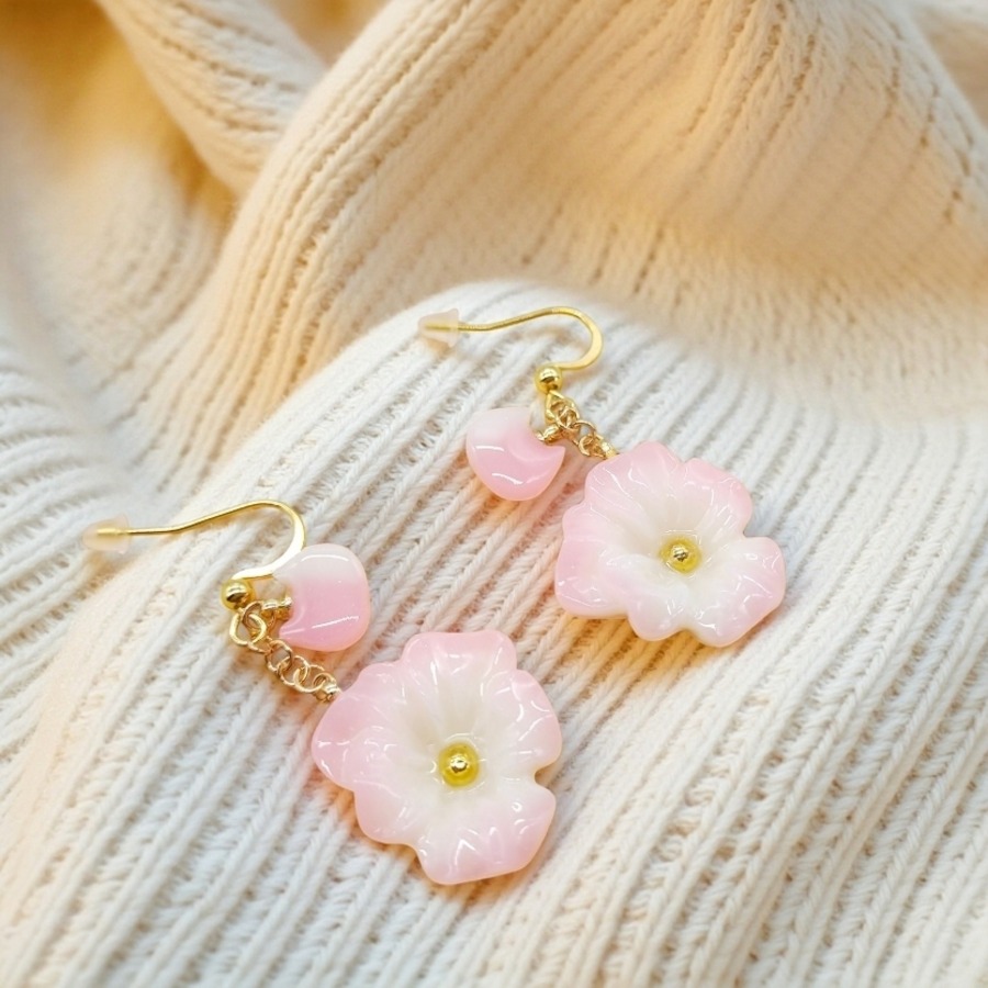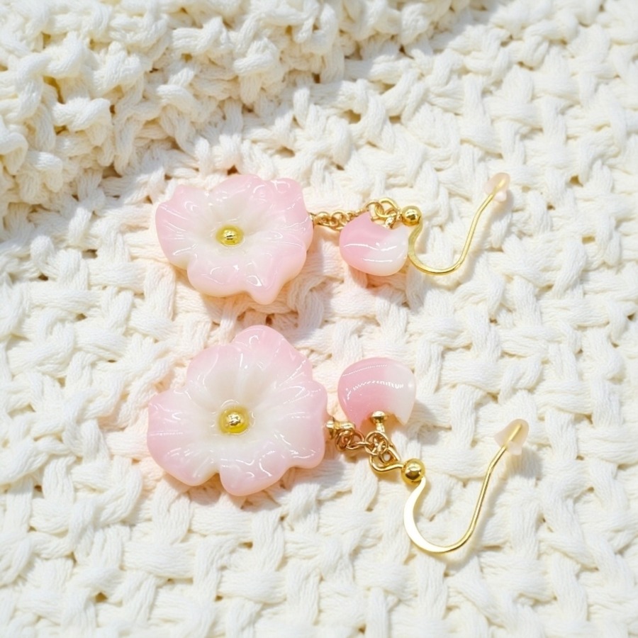 華やかな春を感じる!ピンクのお花の耳飾り...