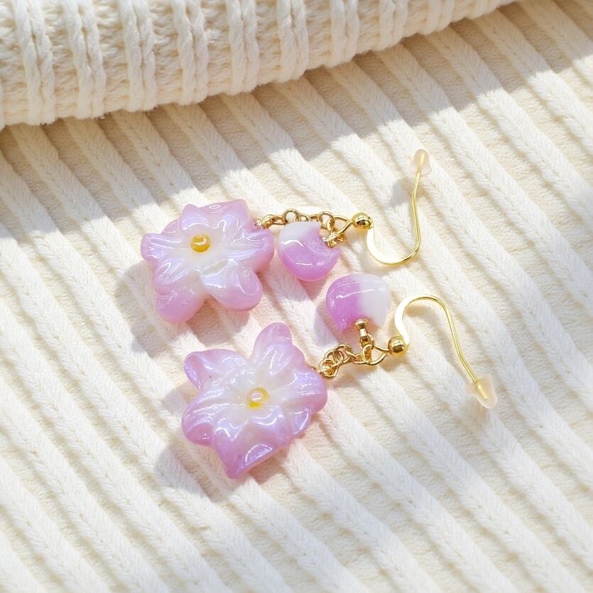 春の訪れを感じる薄紫のフラワーピアス/イヤリング