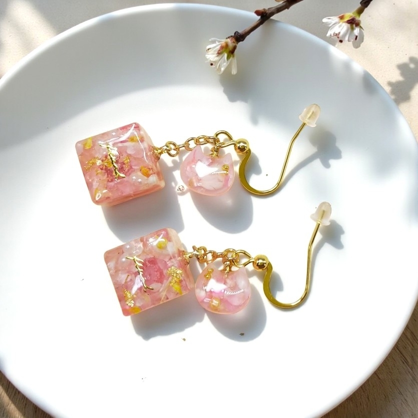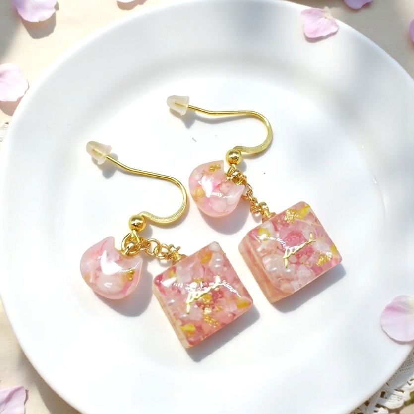 再販//【ピンク】心を癒す春色のキューブピアス/イヤリング