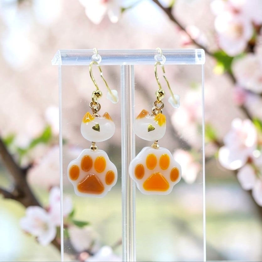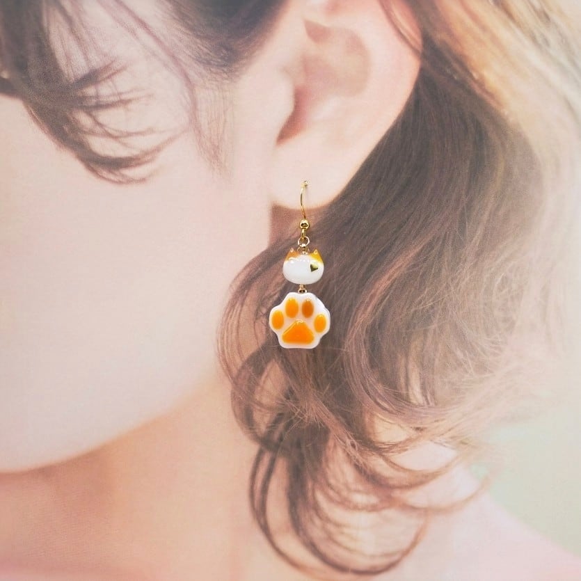 ホイップをはさんだ三毛猫ちゃんの肉球ピアス/イヤリング