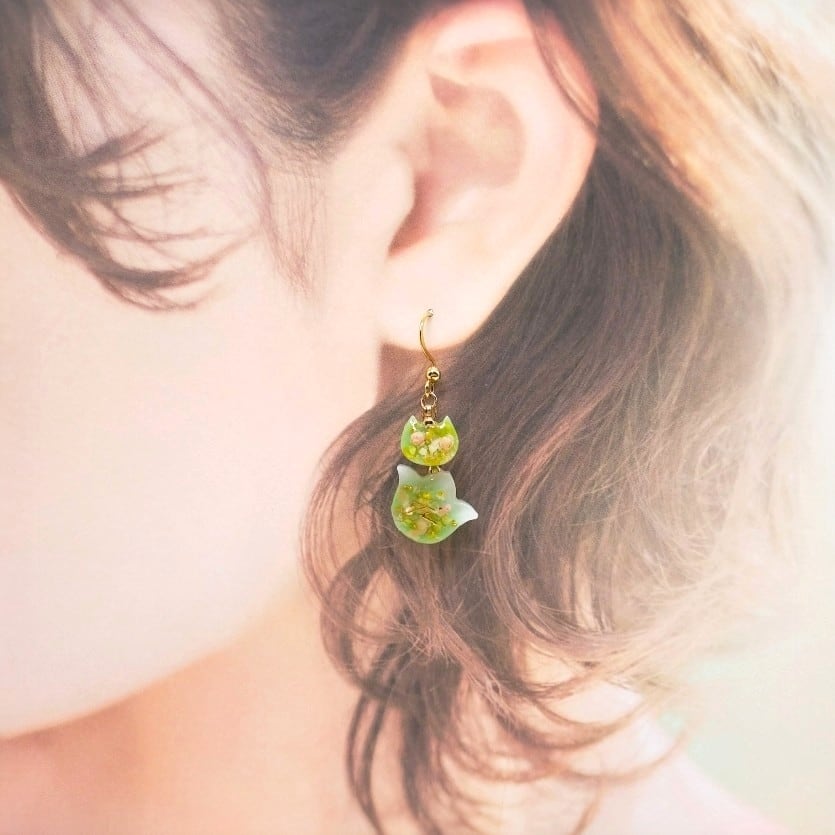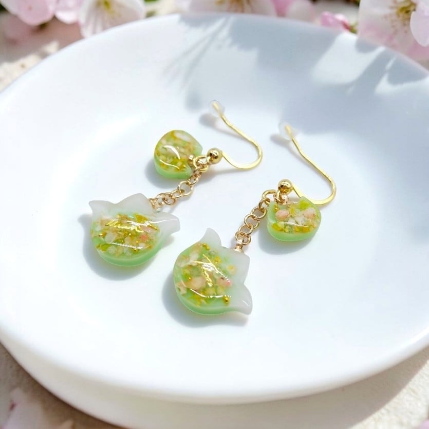 若草カラー!チューリップと猫ちゃんフェイスのピアス/イヤリング