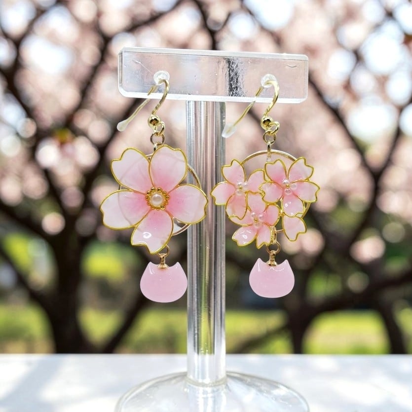 華やかな桜のシーズンにぴったりな、大人可愛い桜と猫ちゃんの耳飾り